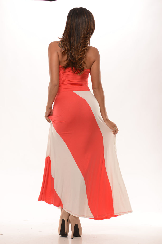 High Waist Diagonal Maxi Skirt/Dress - Strawberry & Ivory