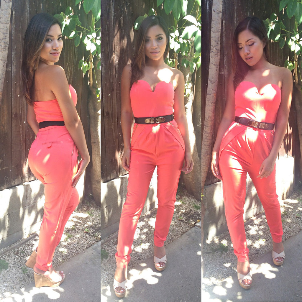 Strapless Jumpsuit with sweetheart detail, a belt, and 2 zipper pockets