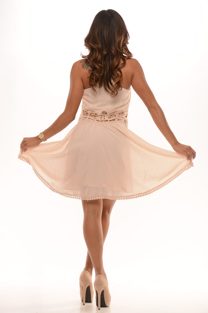 Lace Button Halter Dress Cream
