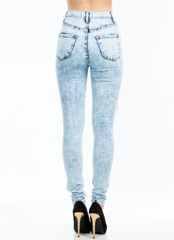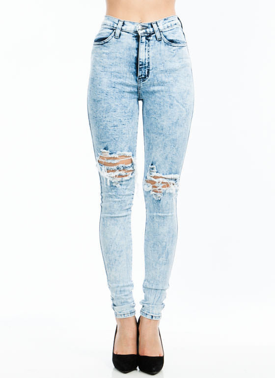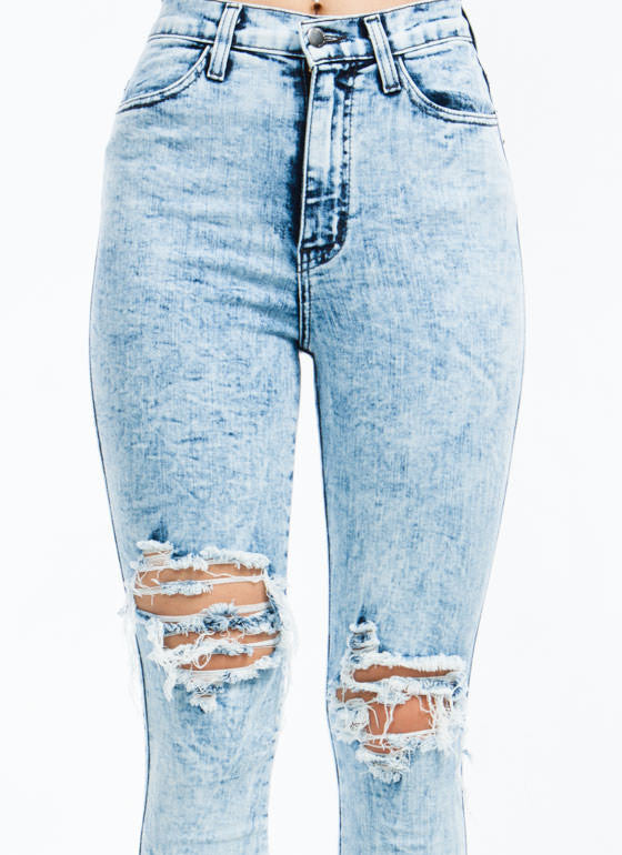 High Waist Knee Distressed - Light Blue