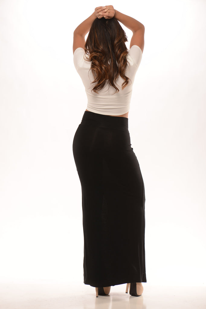 High Waist Side Slit Maxi Skirt - Black