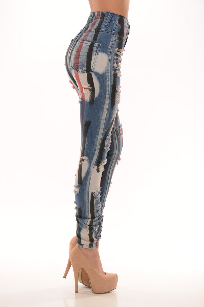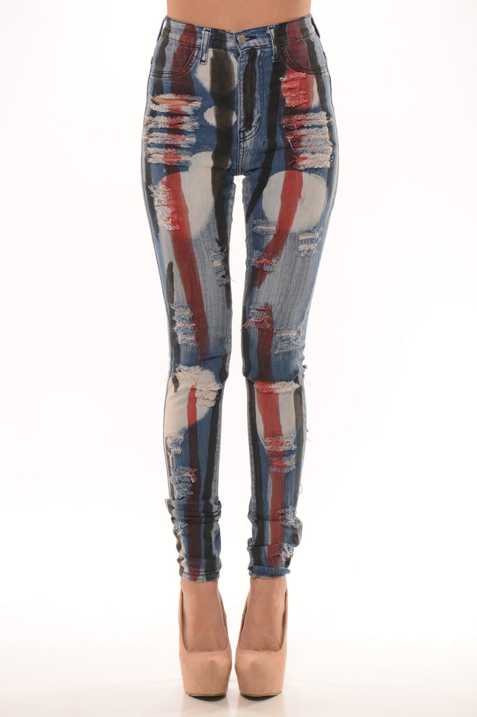 Ripped Jeans with art on them, they are unique and different for those who loves to be different.