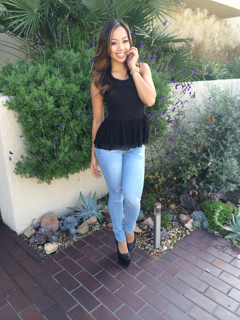 Peplum Mesh Top - Black (Also Available in Ivory)