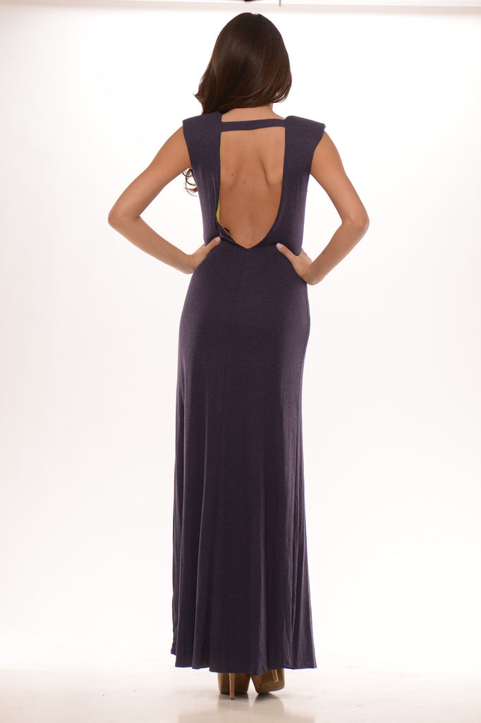 Egg Plant Rib Knit V-Neck Maxi Dress