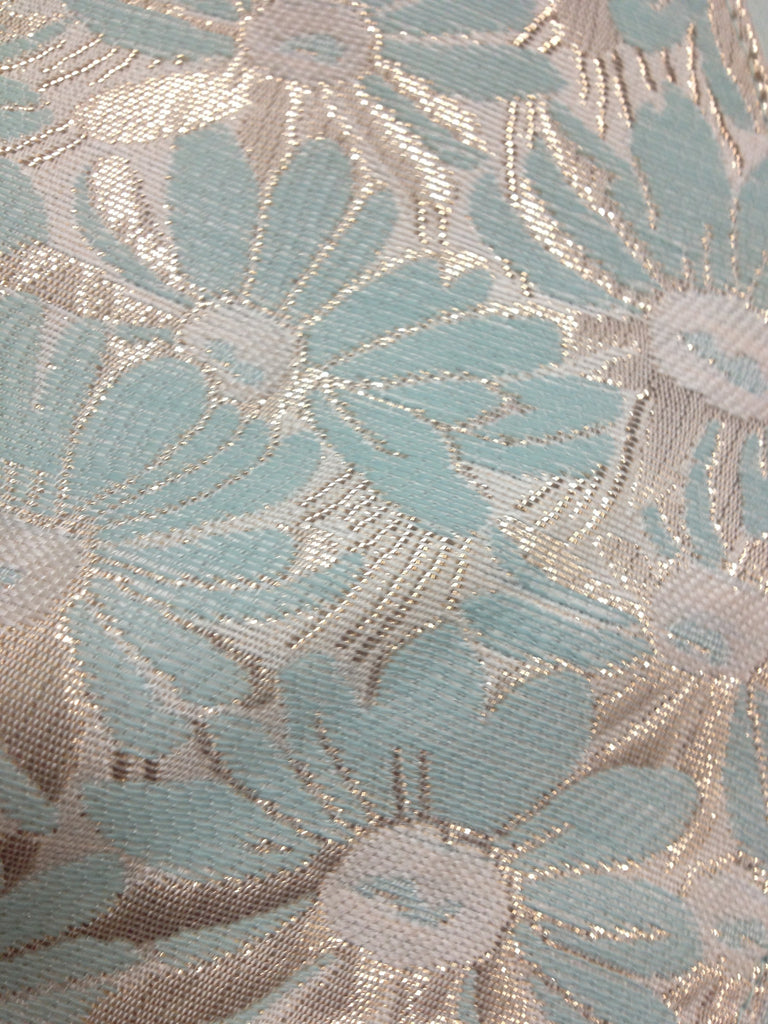 Sleeveless V-neck crop top in blue with foil detail. Has back zipper closure.