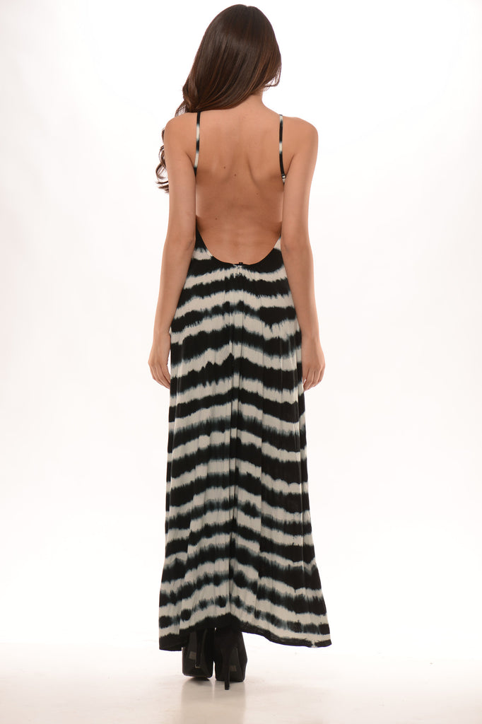 Tie Die Stripe Open Back Maxi Dress - Black